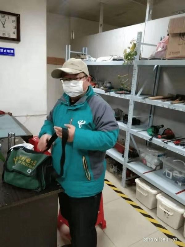 孝感电信分公司政企客户部驻行政中心维护员吴志华从大年三十开始至今天天驻守在防疫指挥部,解决各种通信问题,他身上集中体现了电信人的担当、敬业、坚守和奉献。
