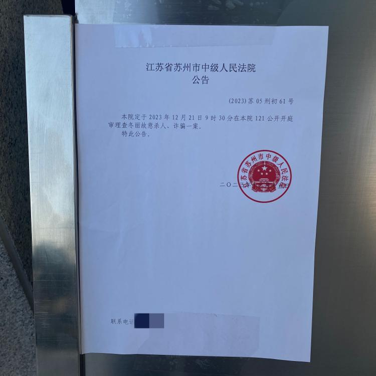 12月21日上午9点30分,苏州“杀夫藏尸冰柜案”在江苏省苏州市中级人民法院开庭审理。当日下午,海报新闻记者回访事发地,事发现场门口仍有多人把守。有同栋业主向记者表示,此案件对小区房价产生了一定影响,有许多住户在事发后搬走。