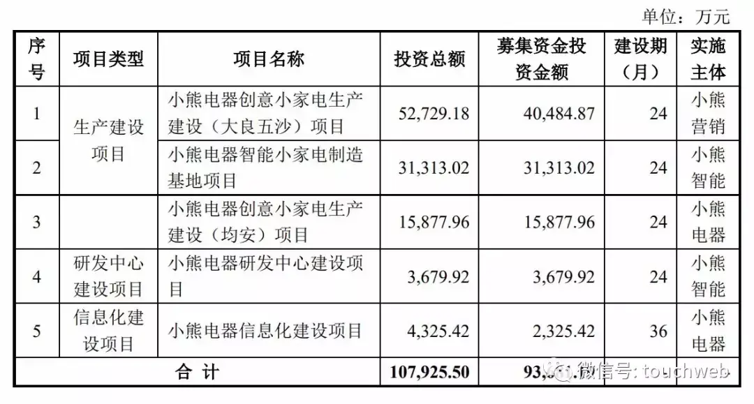小熊电器此次融资主要用于三个方面,分别是生产建设项目、研发中心建设项目及信息化建设项目。