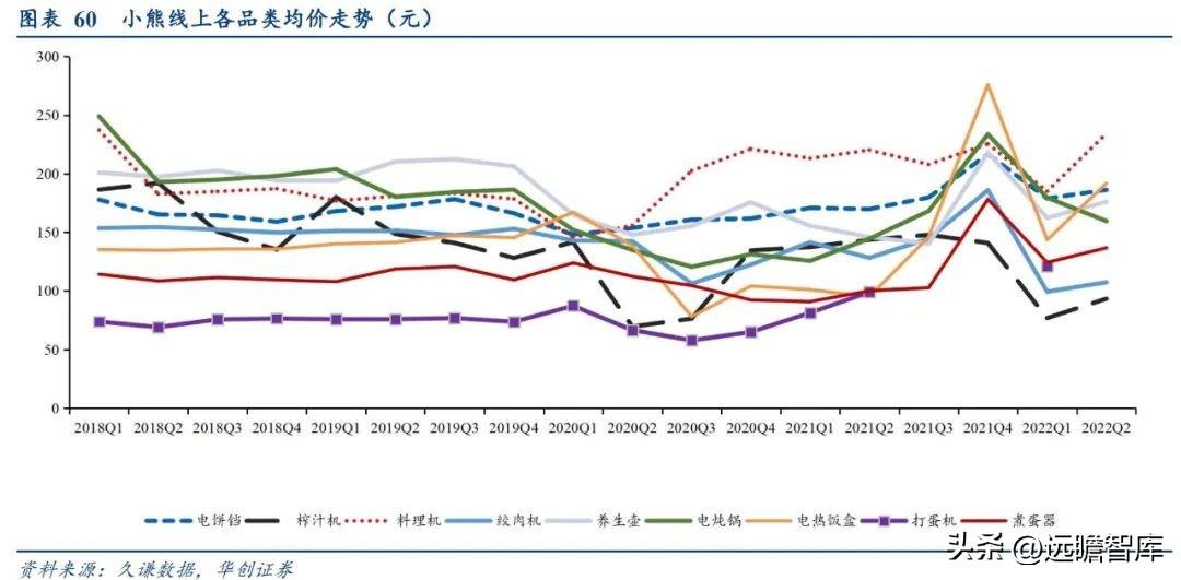 总结来说,在高基数影响逐步退去,原材价格回落的外部环境好转下,小熊自身积极变革成效渐显。我们将结合小厨电行业发展特点,深入探讨小熊多年累积的线上经营优势以及庞大的用户基数下小熊在长尾赛道中的竞争优势以及自身革新所带来增量。