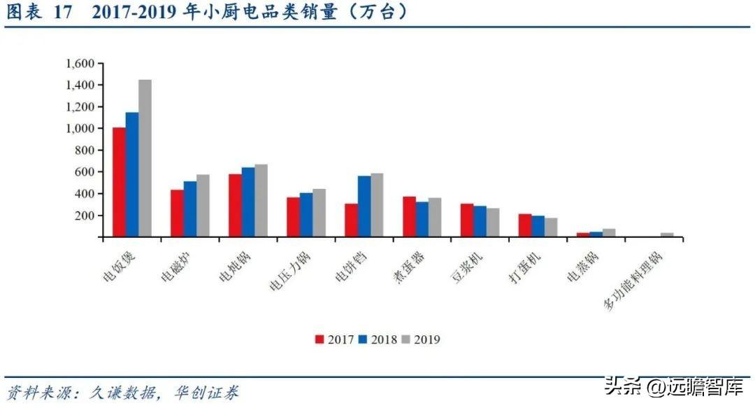 小厨电品类繁多且各个功能不同:以小熊为例,公司拥有60多种品类对外销售。小家电的品类开发依据新的生活使用需求,边界开拓范围较广,往往单一功能就可以衍生出一种新的产品。