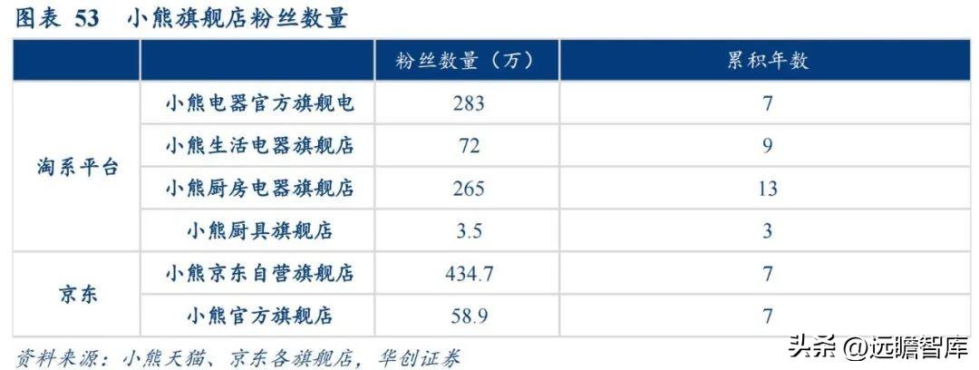 小熊布局新电商、新媒体渠道。 公司与拼多多、平安好医生、云集、贝店、盒马等新兴电商平台达成战略合作,持续深耕电商平台入仓渠道,延展渠道覆盖广度;另一方面,公司积极拓展新兴的媒体渠道,入驻小红书、抖音、B站、快手等社交电商平台,通过直播带货、图文短视频种草方式积极开展品牌宣传与运营,不断巩固公司线上销售优势。
