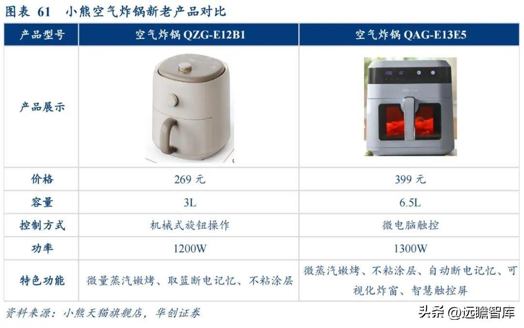 以近期上市的新品价格来看,超一半的新品价格处于中间价以上。同时,公司产品从外观、科技感提升明显,智能化交互方式以及设计人性化等方面全面推动升级产品。以销售热门的空气炸锅为例,小熊新品突破以往传统外观,添加可视化视窗、高清智能屏幕等属性。