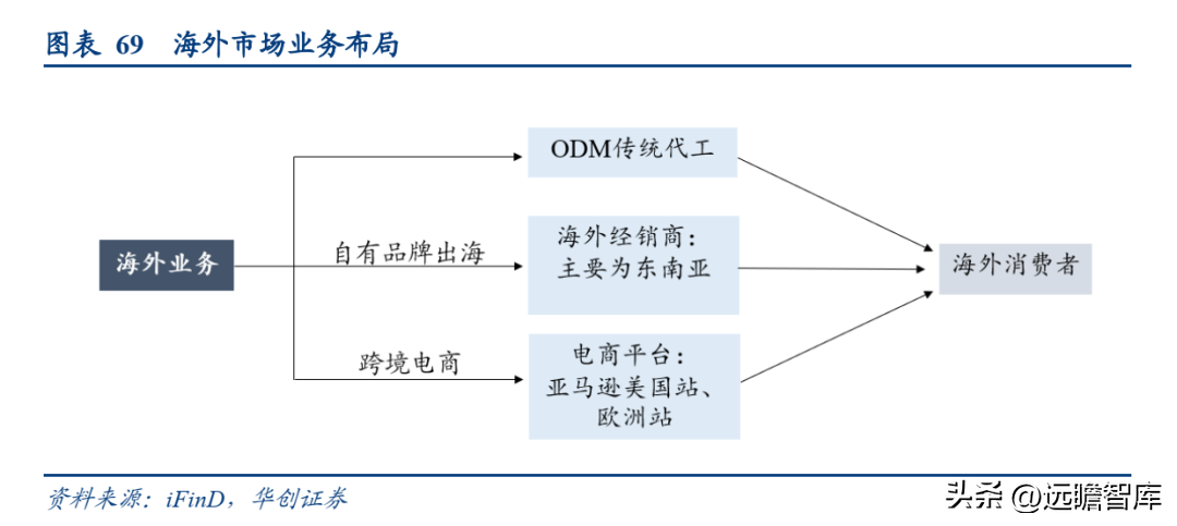ODM传统代工业务: 主要集中于日韩、欧美市场,根据国外品牌运营商的产品规划和订单需求进行生产,或自主进行产品前期设计和开发。