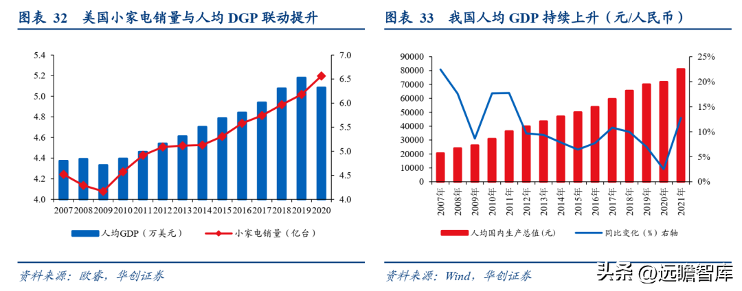人民生活水平提高助力小家电普及渗透。 从美国市场小家电市场发展来看,小家电销量情况与美国人均GDP呈现正相关趋势,生活水平提升对于小家电品类起到促进作用。而随着我国人民生活水平不断提升,消费正对于便捷化、时尚化的需求不断涌现,更加青睐提升生活品质的小家电市场,有助于其普及渗透持续提升。