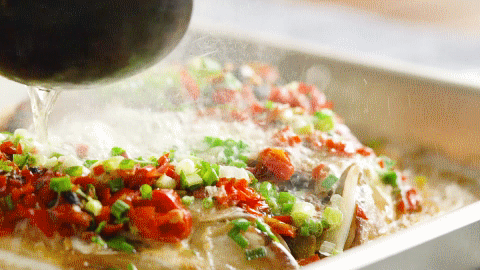 火辣辣的红剁椒,覆盖着白嫩嫩的鱼头肉,冒着热腾腾清香四溢的香气。湘菜香辣的诱 惑,在"剁椒鱼头"上得到了完美体现。蒸制的方法让鱼头的鲜香被尽量保留在肉质之内,剁椒的味道又恰到好处地渗入到鱼肉当中,鱼头糯软,肥而不腻,咸鲜微辣。