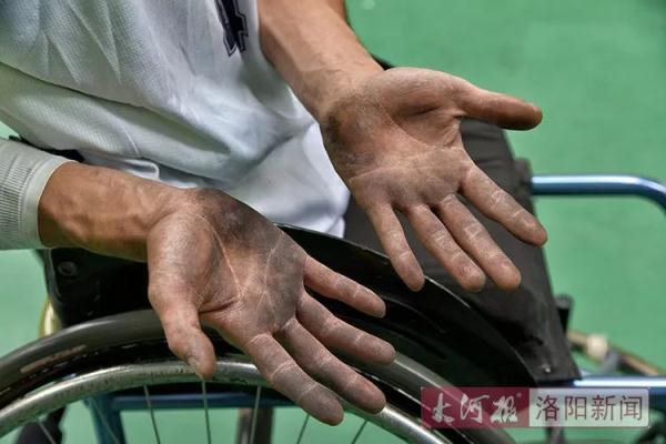 每次用完轮椅后,杜亚甫的手掌都被轮胎污垢染得乌黑