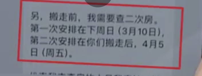 另外还会安排两次查房,分别在搬走前和搬走后。