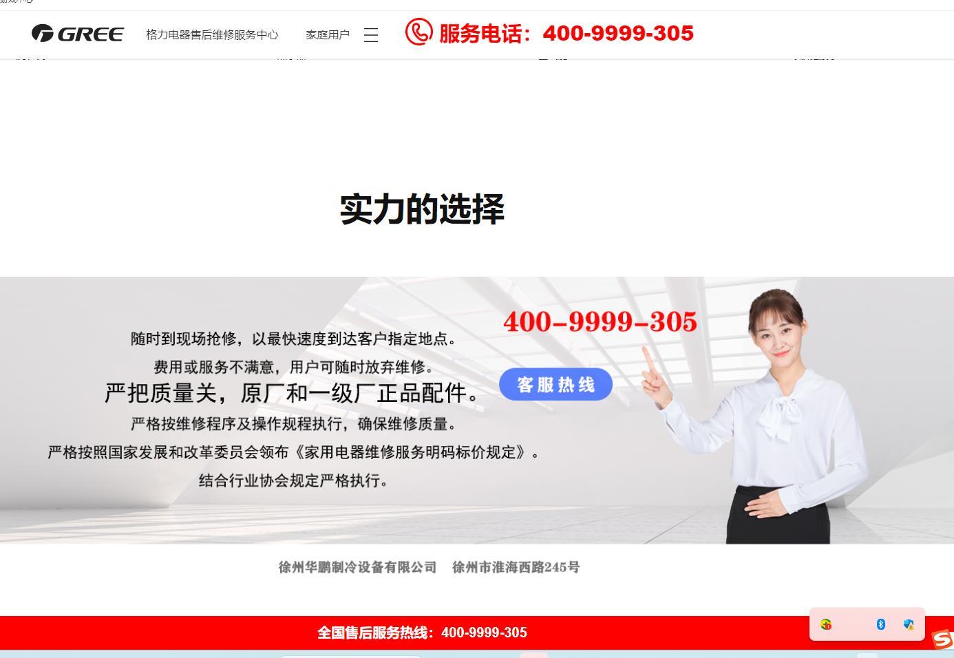 除此之外,记者发现前面“格力空调售后电话”三条维修广告虽然广告页面和售后电话不一样,但都同属于徐州华鹏制冷设备有限公司。