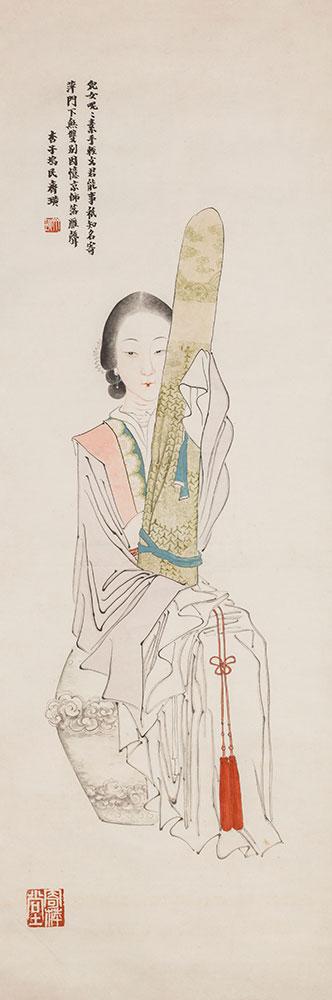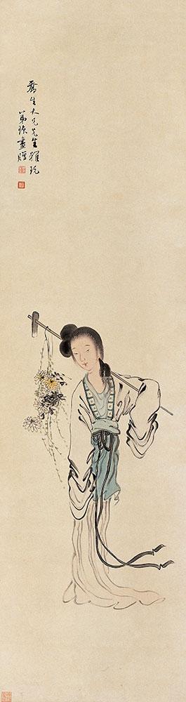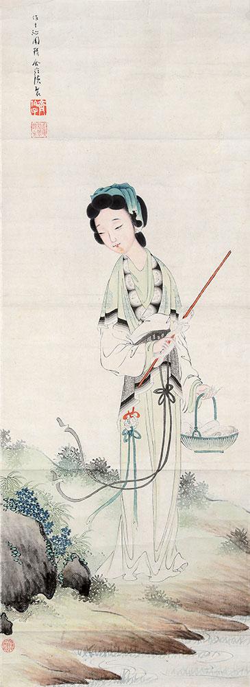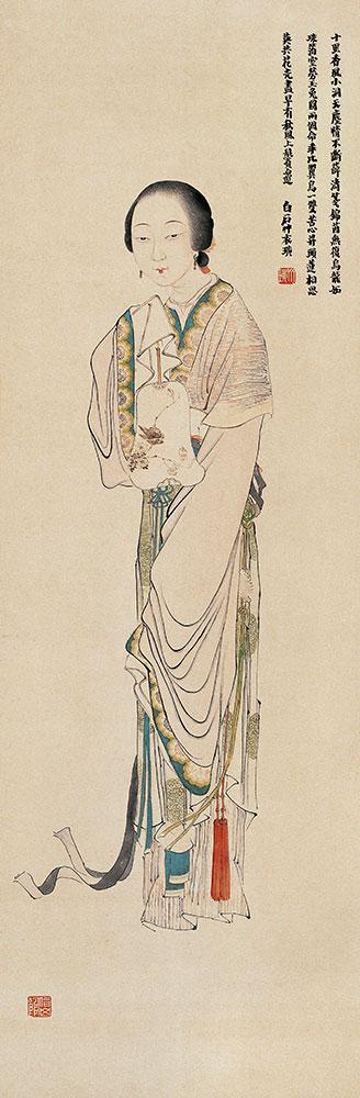 《抱琴仕女图》 清华大学艺术博物馆藏 齐白石 131×41cm 纸本设色