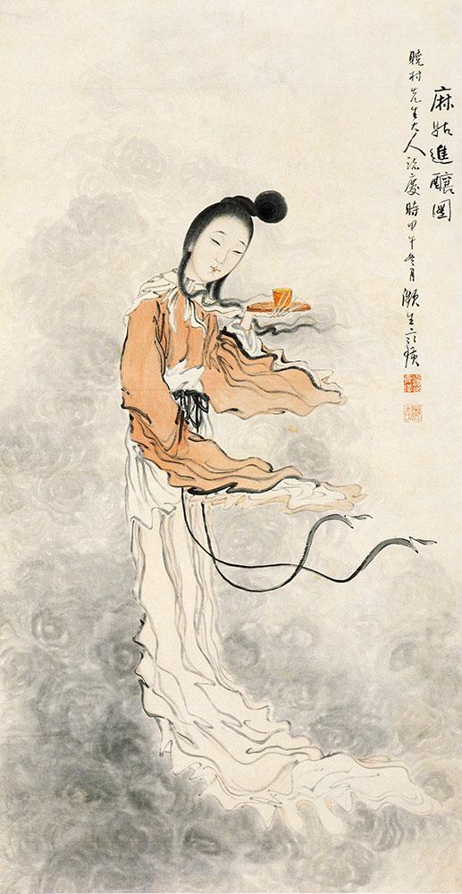《麻姑进酿图》 中央美术学院美术馆藏 齐白石 130×67.5cm 纸本设色 1894