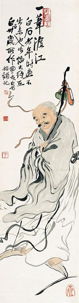 《一苇渡江图》 辽宁省博物馆藏 齐白石 124×32.3cm 纸本设色