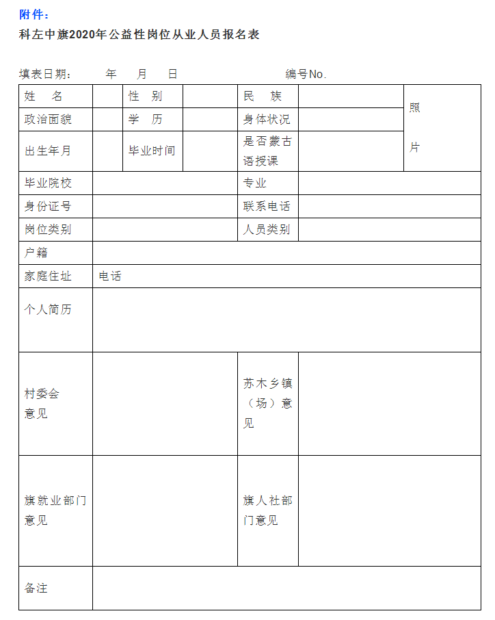 附件:科左中旗2020年公益性岗位从业人员报名表