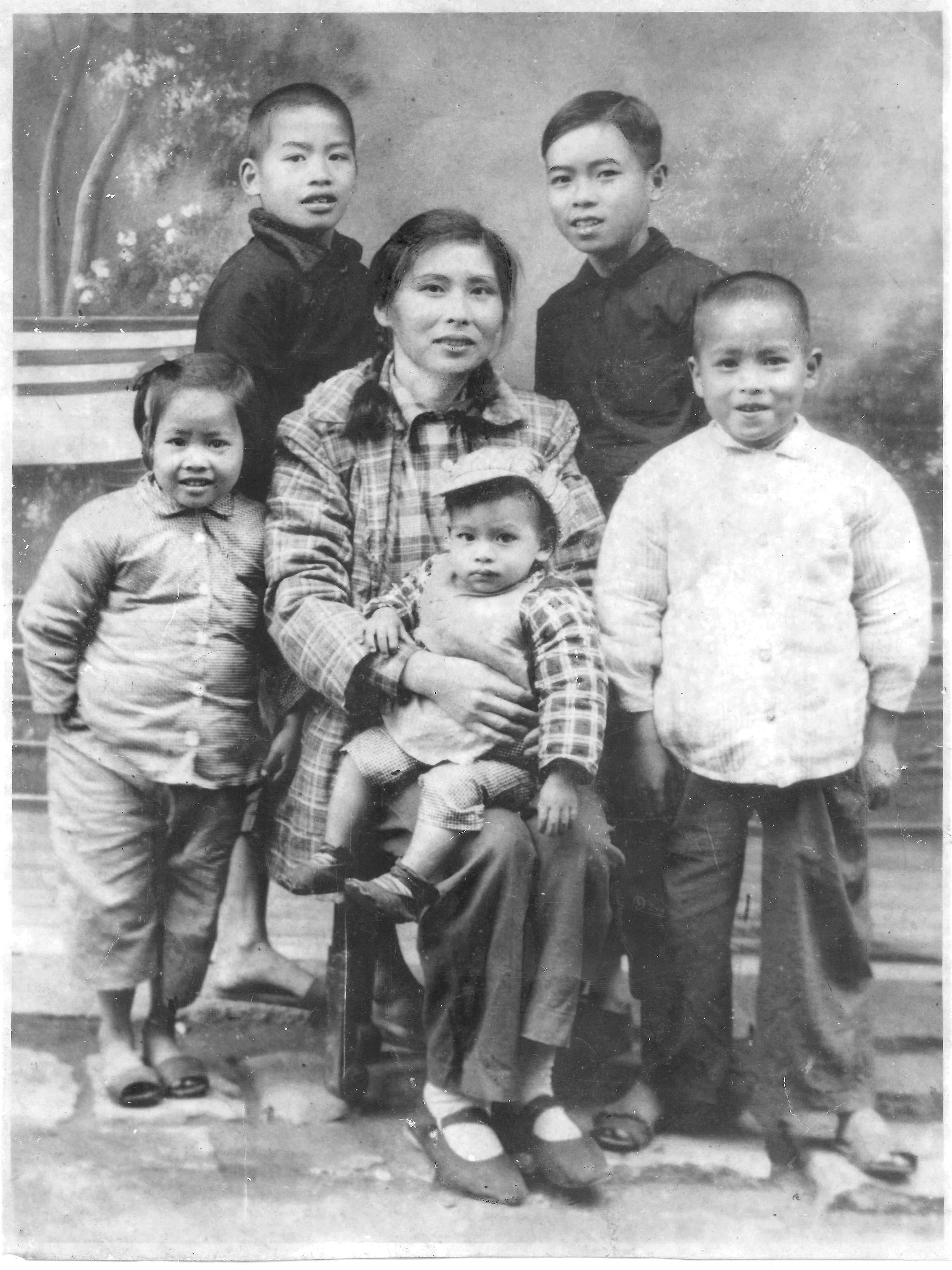 1955年,38岁的甄父在自家照相馆内,为妻子和五个儿女精心拍摄了一张照片,也是全家人的第一张合影。