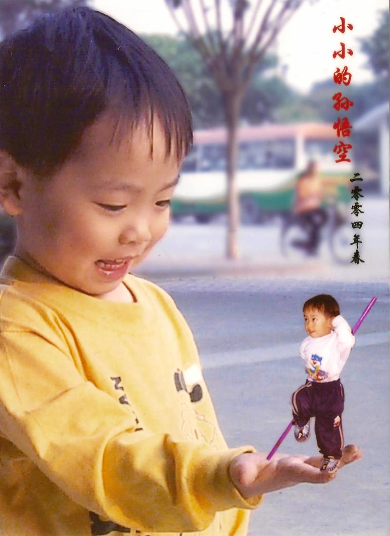 数码时代的创意合成照片,图中的小模特为甄楚然的大外孙。受访者供图