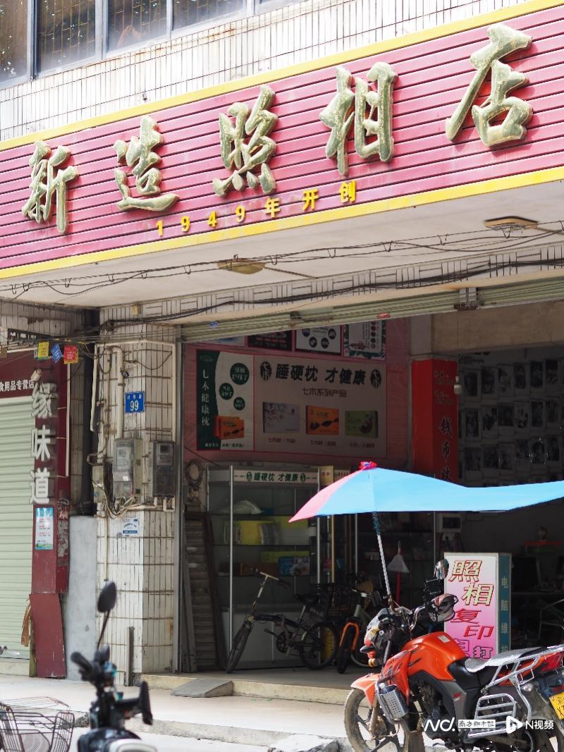 这座小镇上,有一家与新中国同龄的照相馆,至今照常营业。颇具老成气息的红底金字招牌“新造照相店”,下方还有“1949年开创”的注释。显然,店铺也为此骄傲不已。
