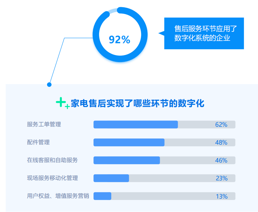 动化、增值服务等环节的数字化程度相对较低,企业售后服务的数字化还有很长的路要走。