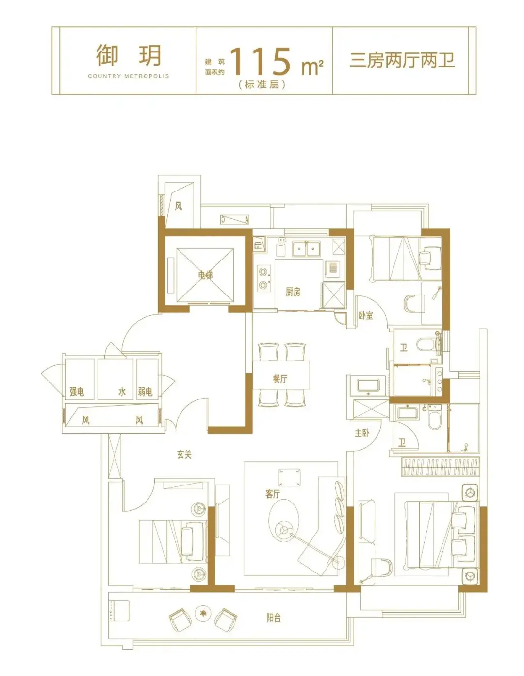 2、约115㎡的主力户型,布局合理,超高利用率,舒适度满分;