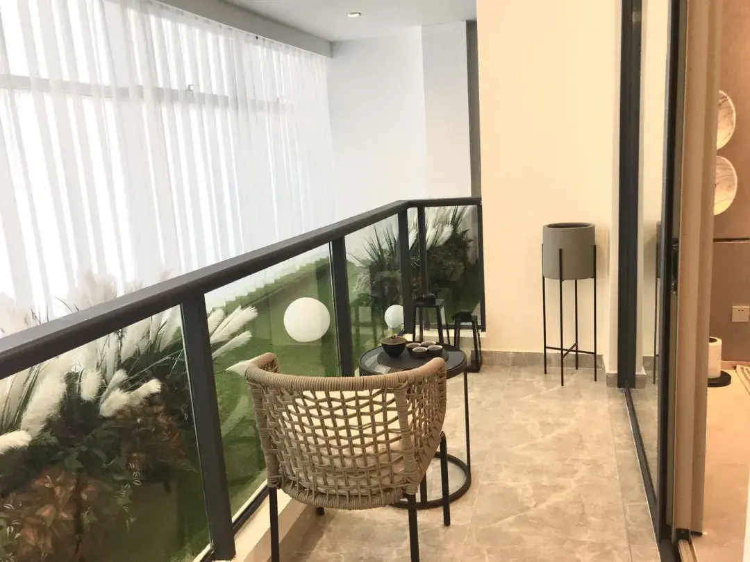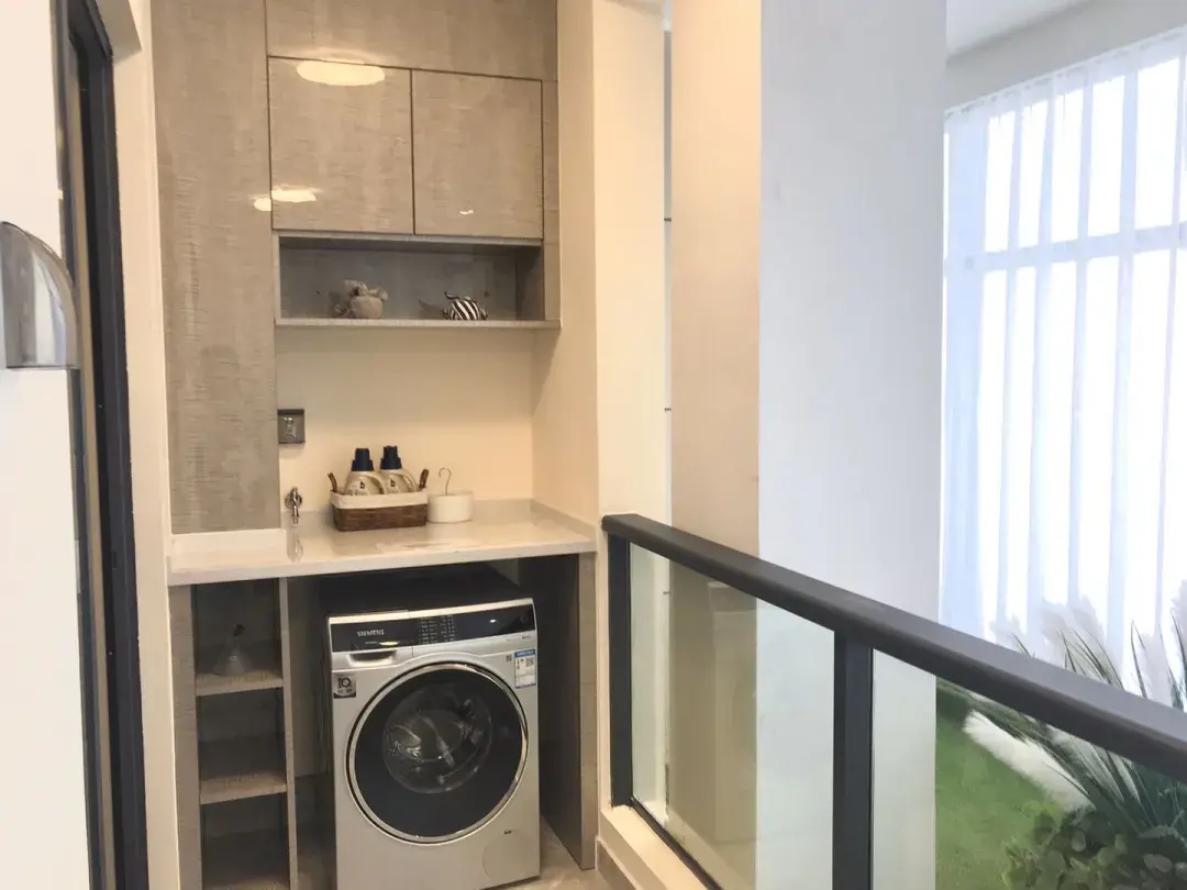 这样的阳台不仅满足了洗衣晾晒的功能,而且能给家人留出一处喝茶晒太阳的地方,真正地感受一下生活的悠闲。