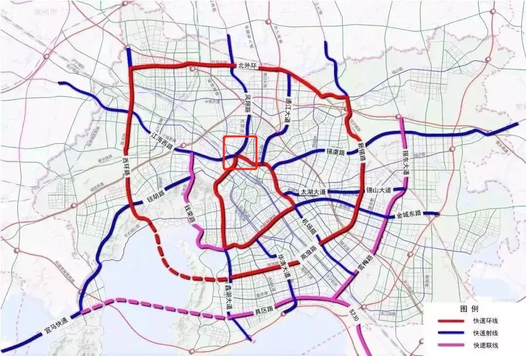 (无锡快速路网规划图,红框部分为刘潭地铁商贸区)