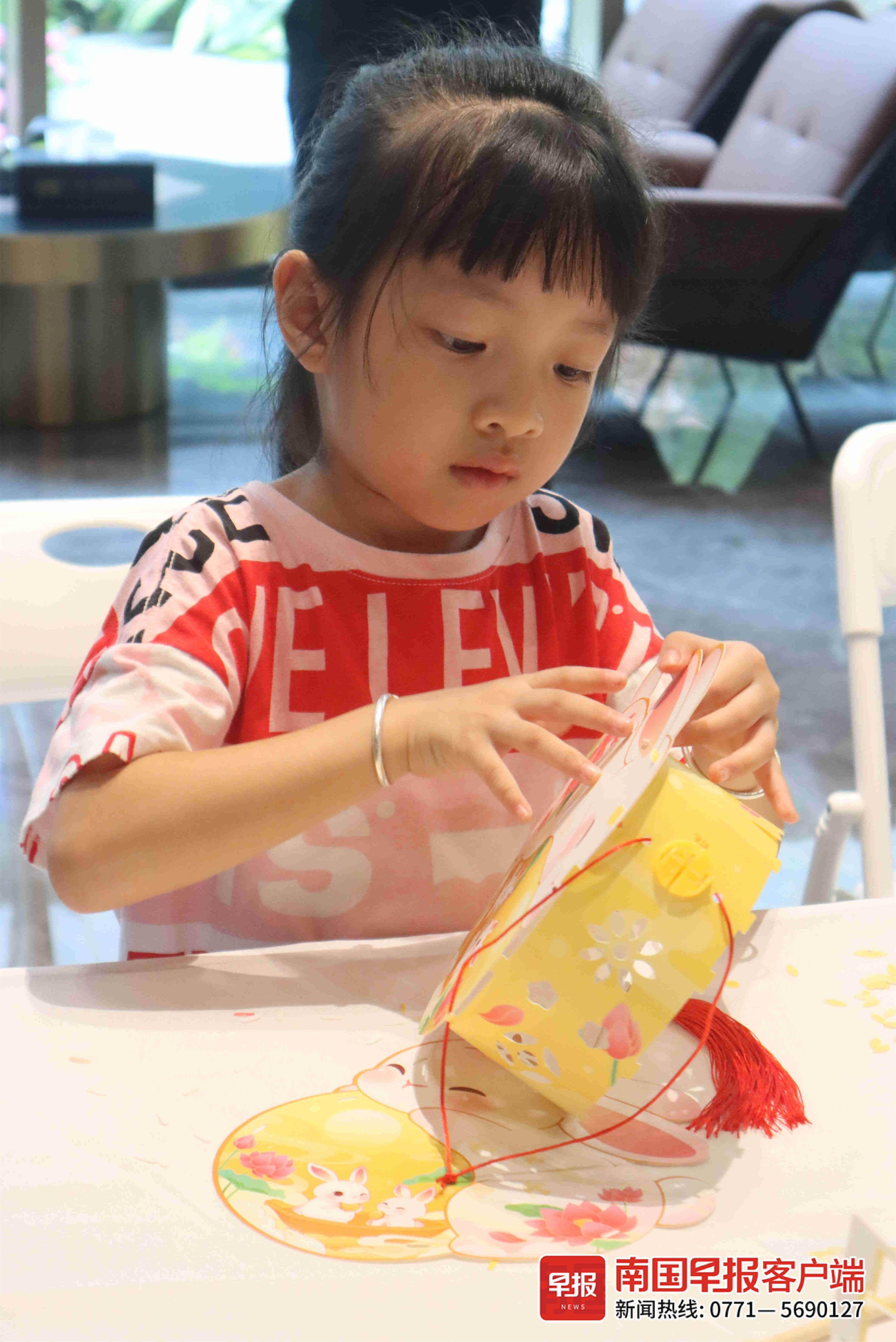 一名小朋友在广旅·湖峰尊府营销中心体验手作花灯。南国早报全媒体见习记者 黄璐露摄