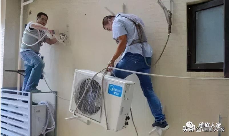 1、在可能导致人员坠落的场地进行空调器室外机组拆卸时,操作者必须系好安全带。安全带另一端应牢固的固定,以防坠落。