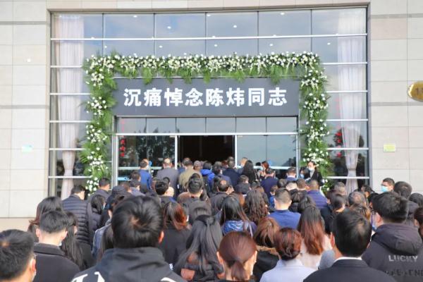 “沉痛悼念陈炜同志”的横幅庄严而肃穆