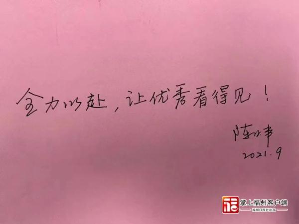 在2020年福州三中新年贺词中,陈炜深情寄语:“我们要攀登更高的山峰,跋涉更远的征程,去看人生的无限风光,那就一定要在我们的行囊中带上梦想、思考与希望。”这不仅是他对学生的期许,他自己也始终在铺满梦想的教育大道上向前奔跑,用光和热点燃了很多人对未来的希望。