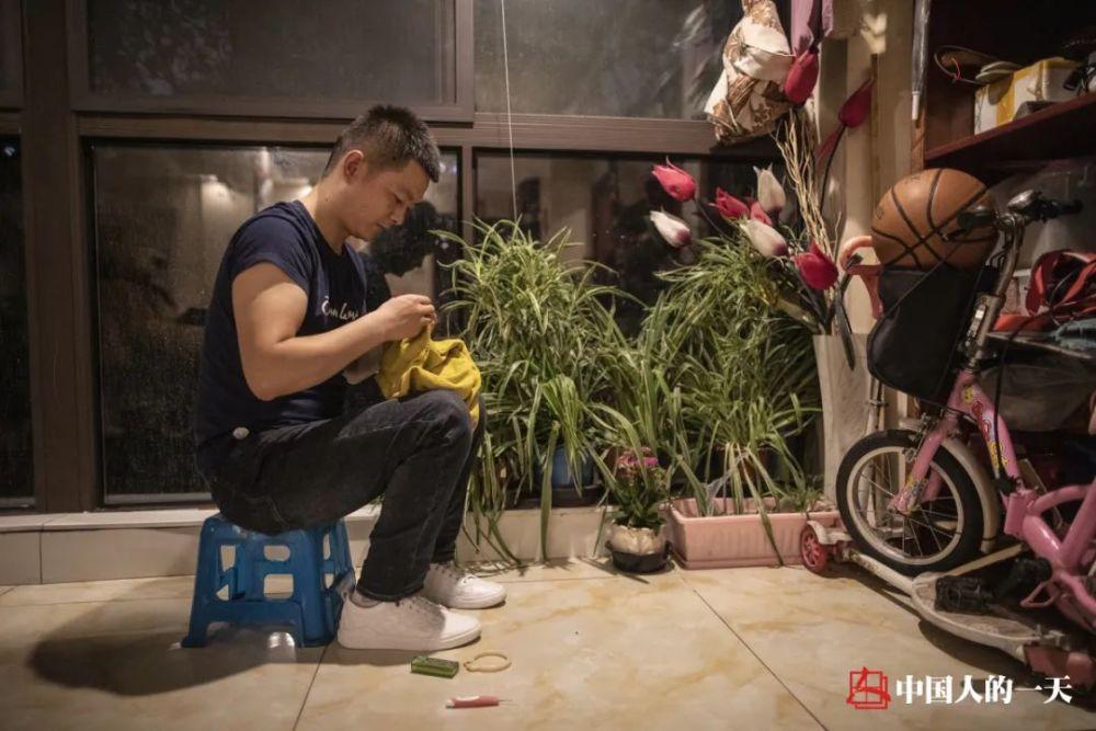 他喜欢把活带回家里,在家人的陪伴下完成。