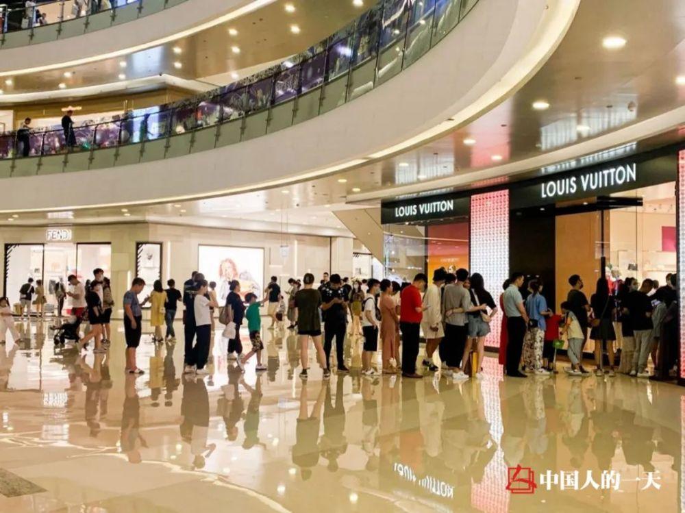 杭州商场奢侈品店门口排长队的景象。