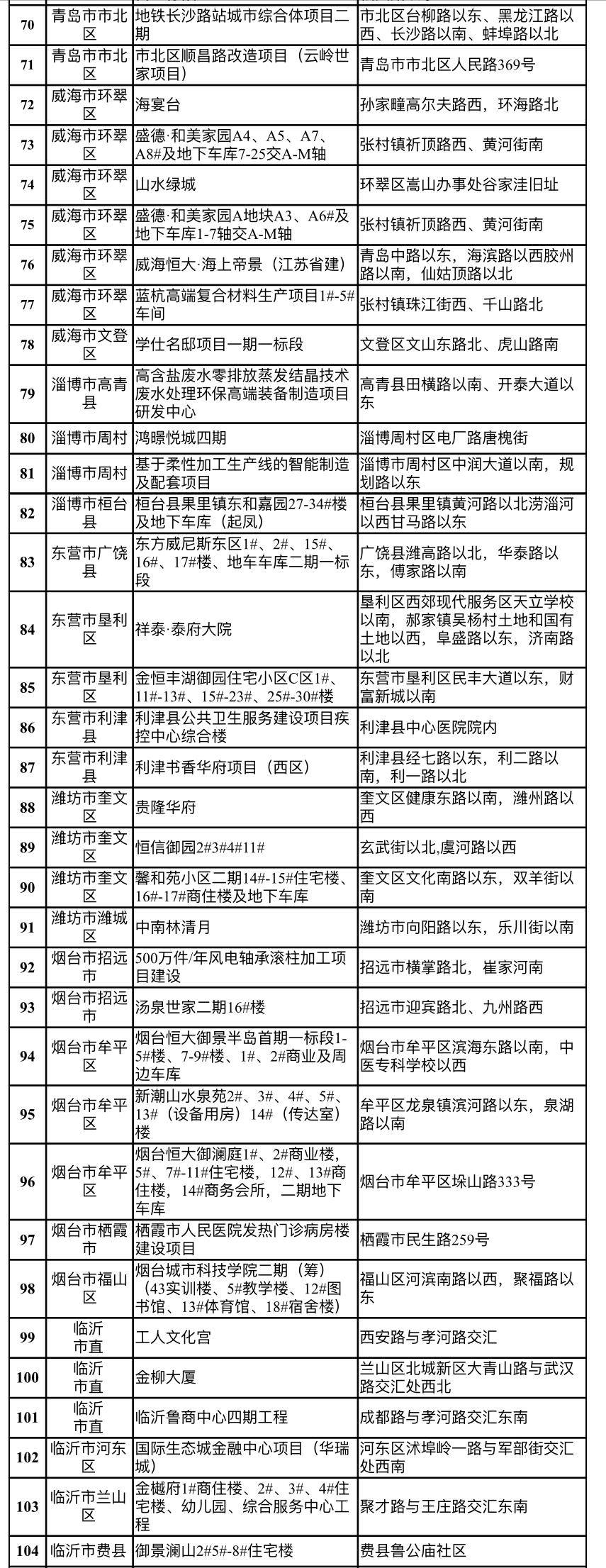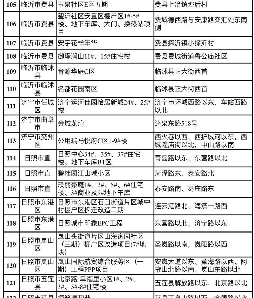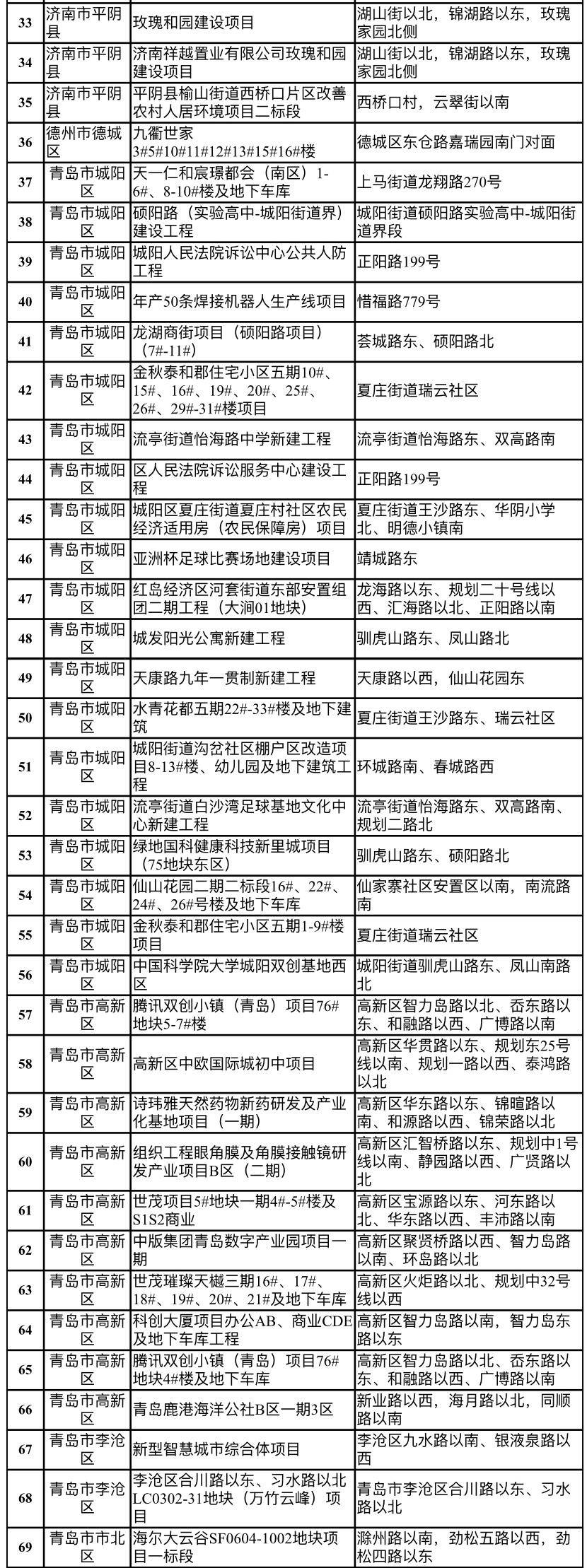 抽查名单显示,此次检查的122个项目包括济南市的海信九麓府A3地块房地产开发项目二期、万科药山西地块A-3建设项目、公共租赁住房(二期工程)、新城·领寓房地产开发项目、九阳总部及创意创新中心、济南市轨道交通R1号线工程、铅笔厂B地块房地产开发项目(6#,7#,11#,12#,13#,地下车库二标段)等。
