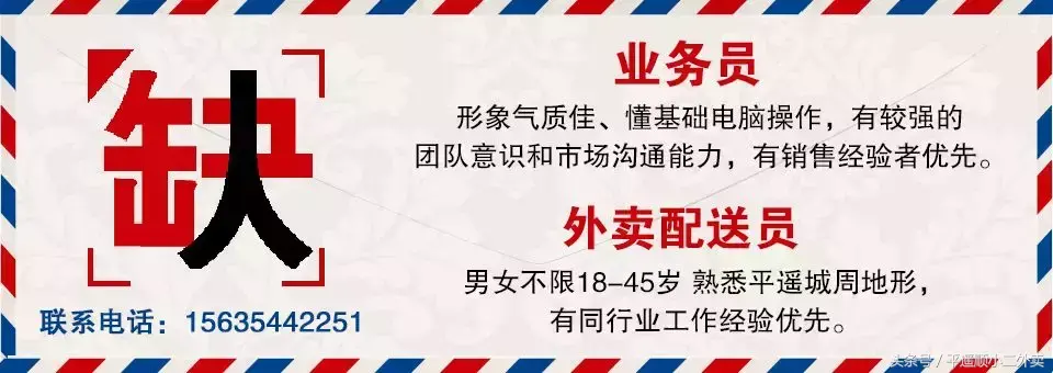 平遥古城里,招一名炒菜的,活简单,15235400215