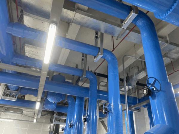 声学效果是大剧院的核心,为保障专业演出效果,减少系统运行引起管线震动带来的噪音,项目团队经多次试验遴选,将空调机房内的所有风管及水管都使用了弹簧隔震支吊架,机房外使用橡胶隔震支吊架,部分空调系统的送回风管道上增加了近千个消声设备,确保呈现给听众“声”临其境的体验。