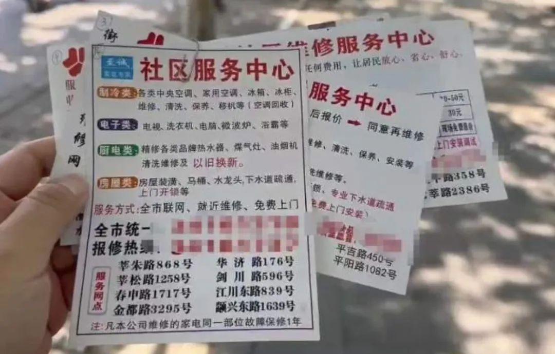 近期,彭浦新村等街道有居民反映,家里的信箱时不时会收到一张小卡片,卡片上写着“社区服务中心”。有些居民家中的空调等家电坏了,便顺手拨打卡片上的联系方式,联系维修人员上门维修家电。