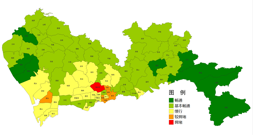 普通工作日早高峰全市主要街道交通运行状态图(预测)