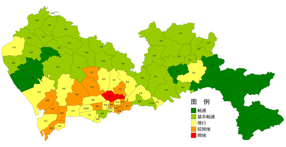 普通工作日晚高峰全市主要街道交通运行状态图(预测)