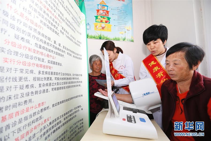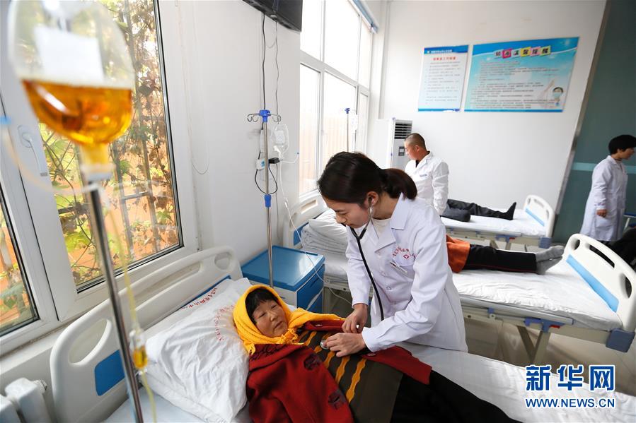 11月15日,山东青岛即墨区华山卫生院医生在柳沟社区中心卫生室为村民提供健康咨询。2016年以来,山东青岛即墨区大力实施分级诊疗制度,在偏远农村建成100多处“中心卫生室”。村级“中心卫生室”设诊断室、治疗室、健康教育室等,由乡镇卫生院骨干医生定期来此坐诊,这一举措有效提高了村级医疗服务水平,方便村民家门口就医。新华社发(梁孝鹏 摄)