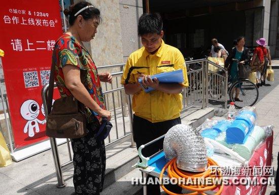 老人向工作人员咨询家庭维修服务 记者 郑雪靓 摄