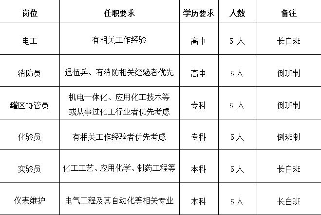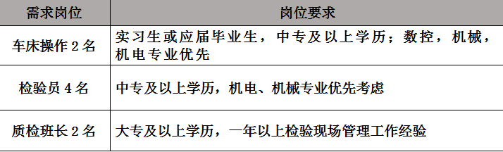 1、要求:年龄18—45岁,初中以上文化,男女不限,服从安排,适应倒 班,有相关工作经验者优先聘用。