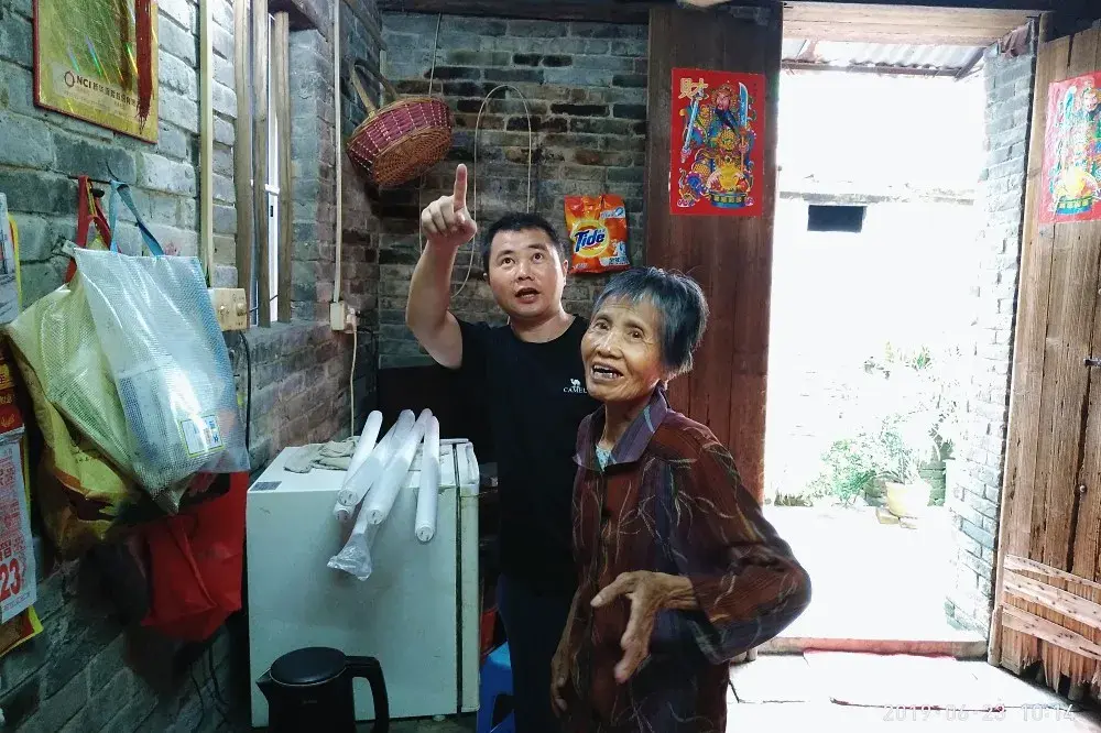 16年,有一次去麦村搞维修。村委会说有个老人行动不便,出不来,家里也有一些电器坏了。问能不能派几个人上门给TA修一下。我和梁书记,还有几个学生就上门看看。电器,电水壶这些很快都修好了。但发现家里电线很糟糕,乱拉乱接。老人行动不便,躺在床上,很多电线直接拉到床边来。有些灯又坏了。护工不会弄。