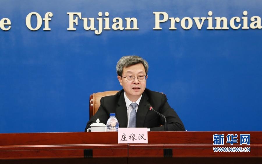 厦门市委副书记、市长庄稼汉发布厦门经济社会发展情况。新华网 蒋巧玲 摄