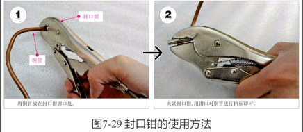 使用封口钳进行封口操作的方法也比较简单,直接通过钳口进行挤压即可,如图7-29所示。