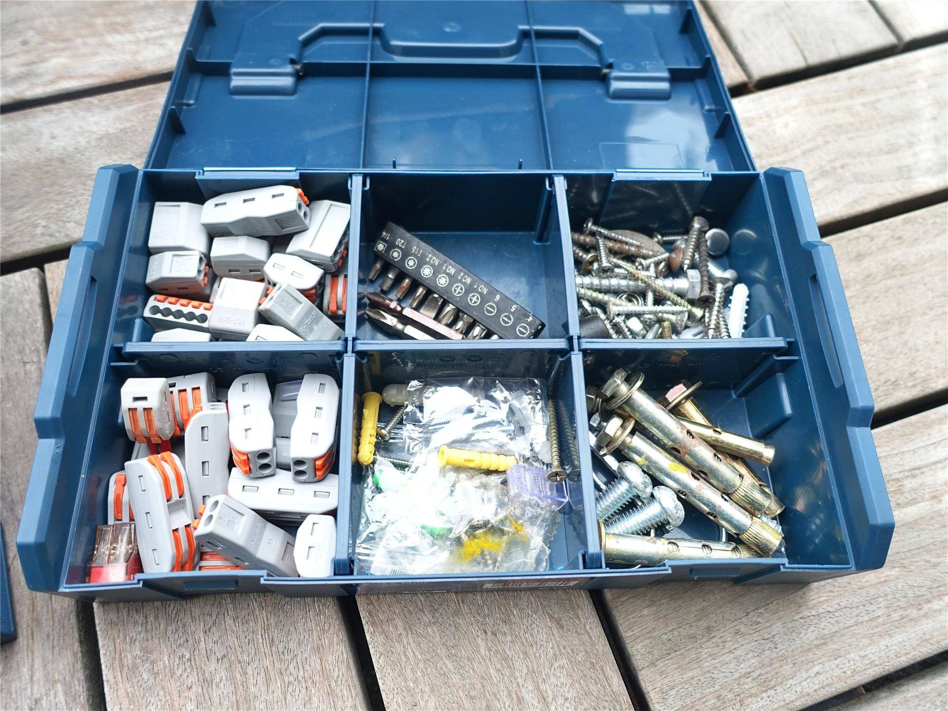 这个Mini收纳盒刚好能将我常用的一些零碎小玩意装进去,连同GO二代一起放在我父母那边,有时候要帮他们干点小维修活也就更方便了,不用再到处翻箱倒柜的找钉子,找螺丝,找快接头……