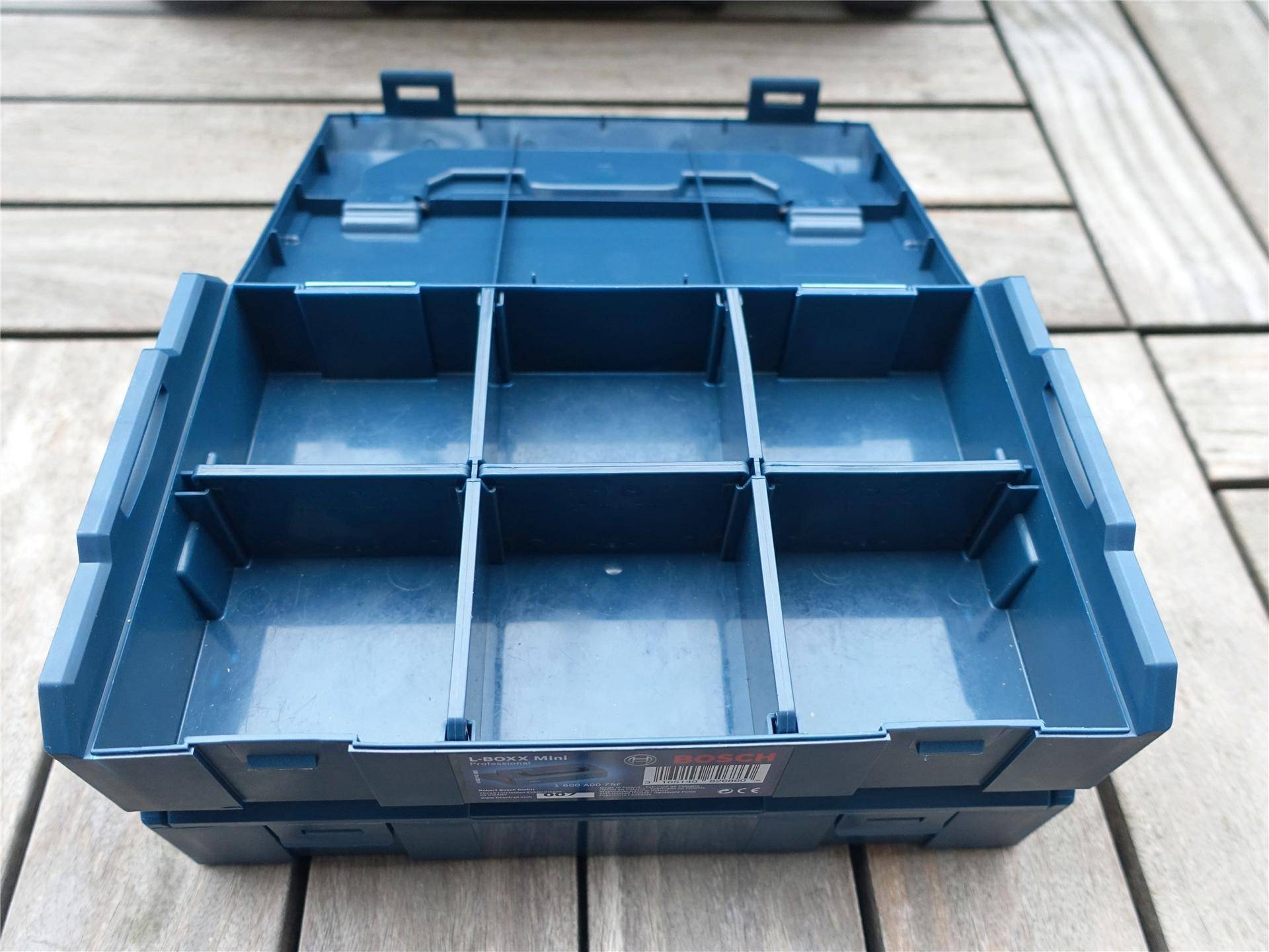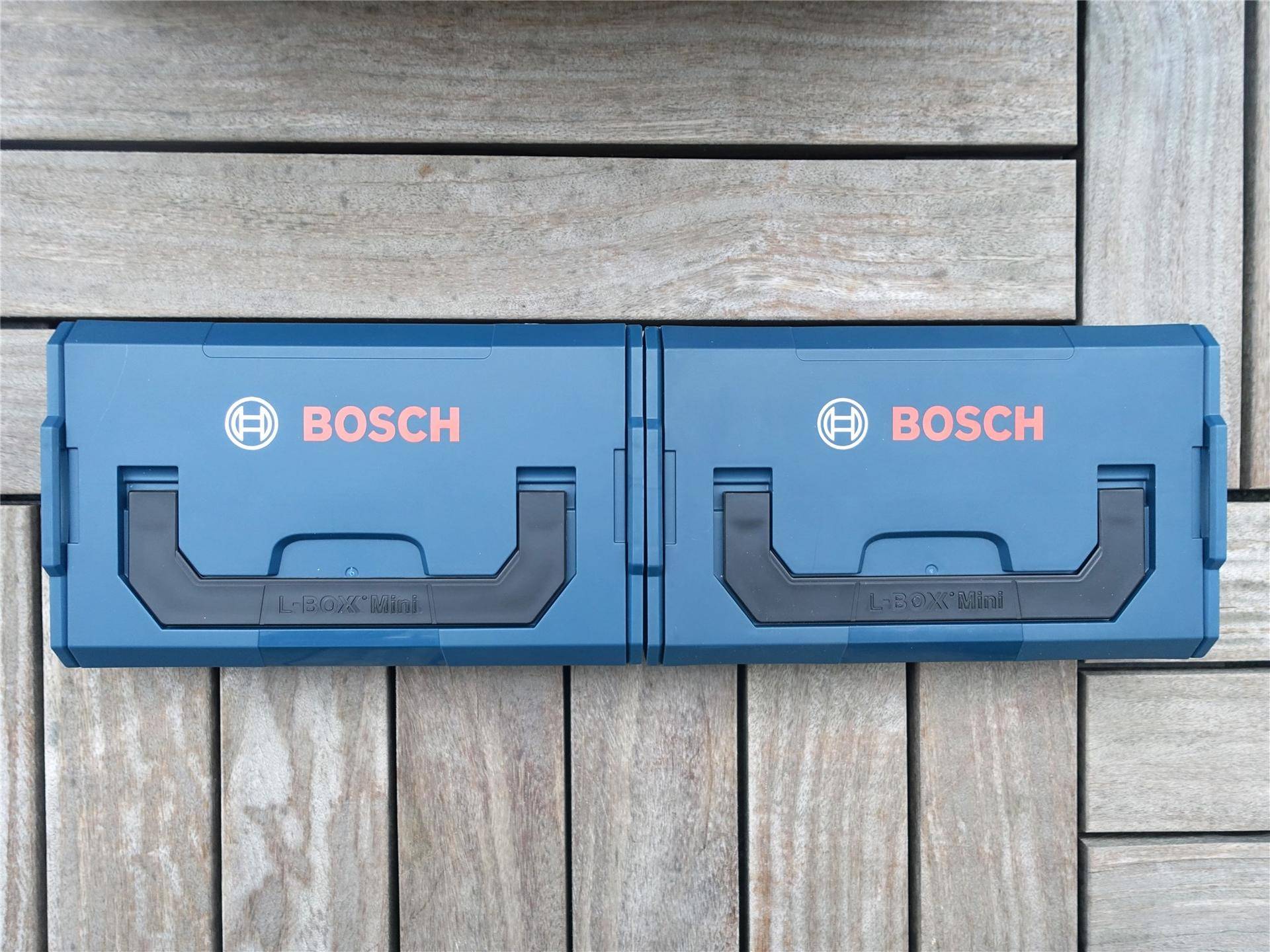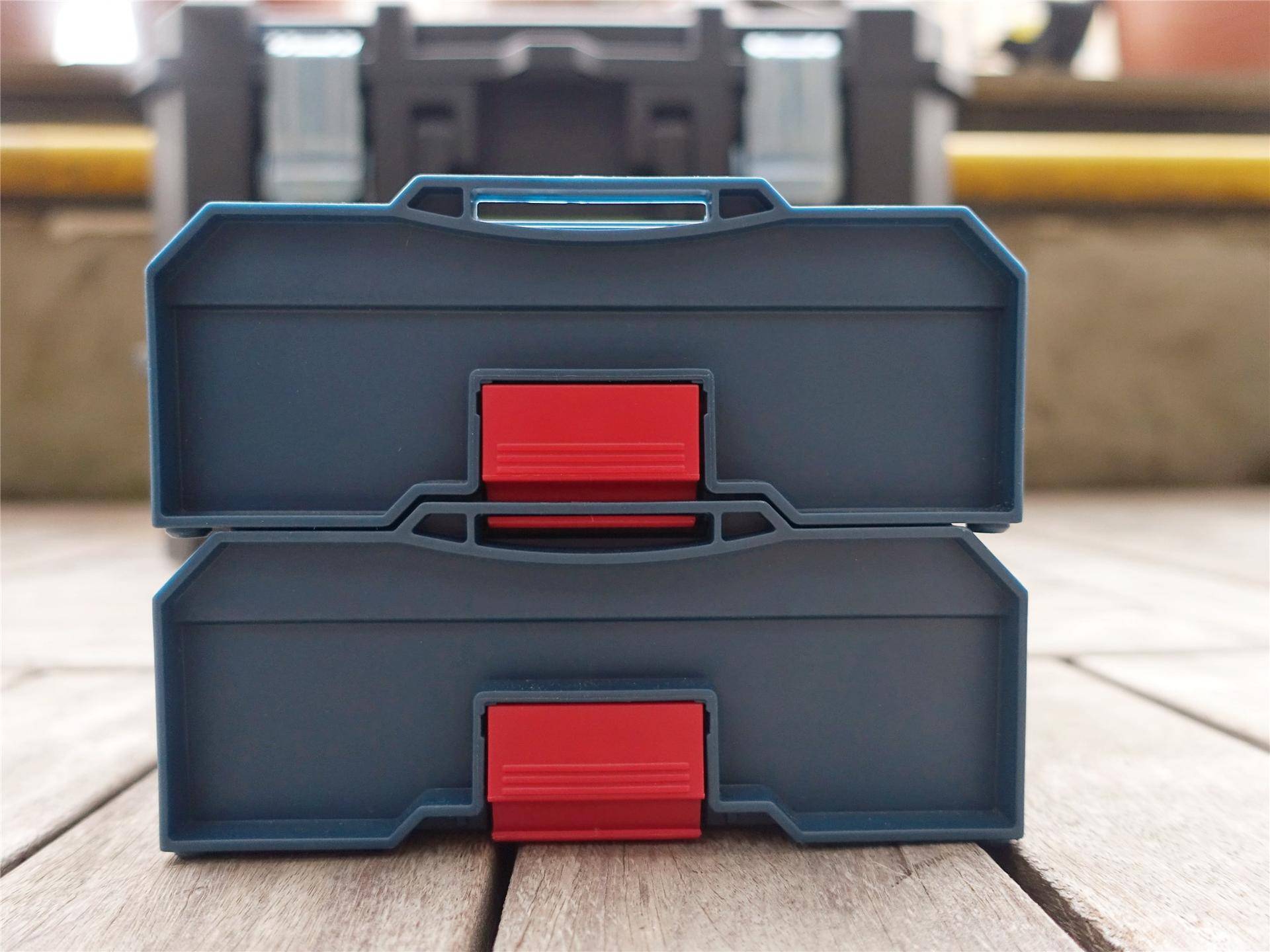 这套轻松收纳版其实是包含了博世GO二代Mini工具盒+Mini收纳盒两个部分,两部分可以像堆叠箱一样,通过两侧的快接卡扣轻松组合在一起,当然,我们也可以单独的再额外购买Mini收纳盒进行组合,扩展性还是非常好的。