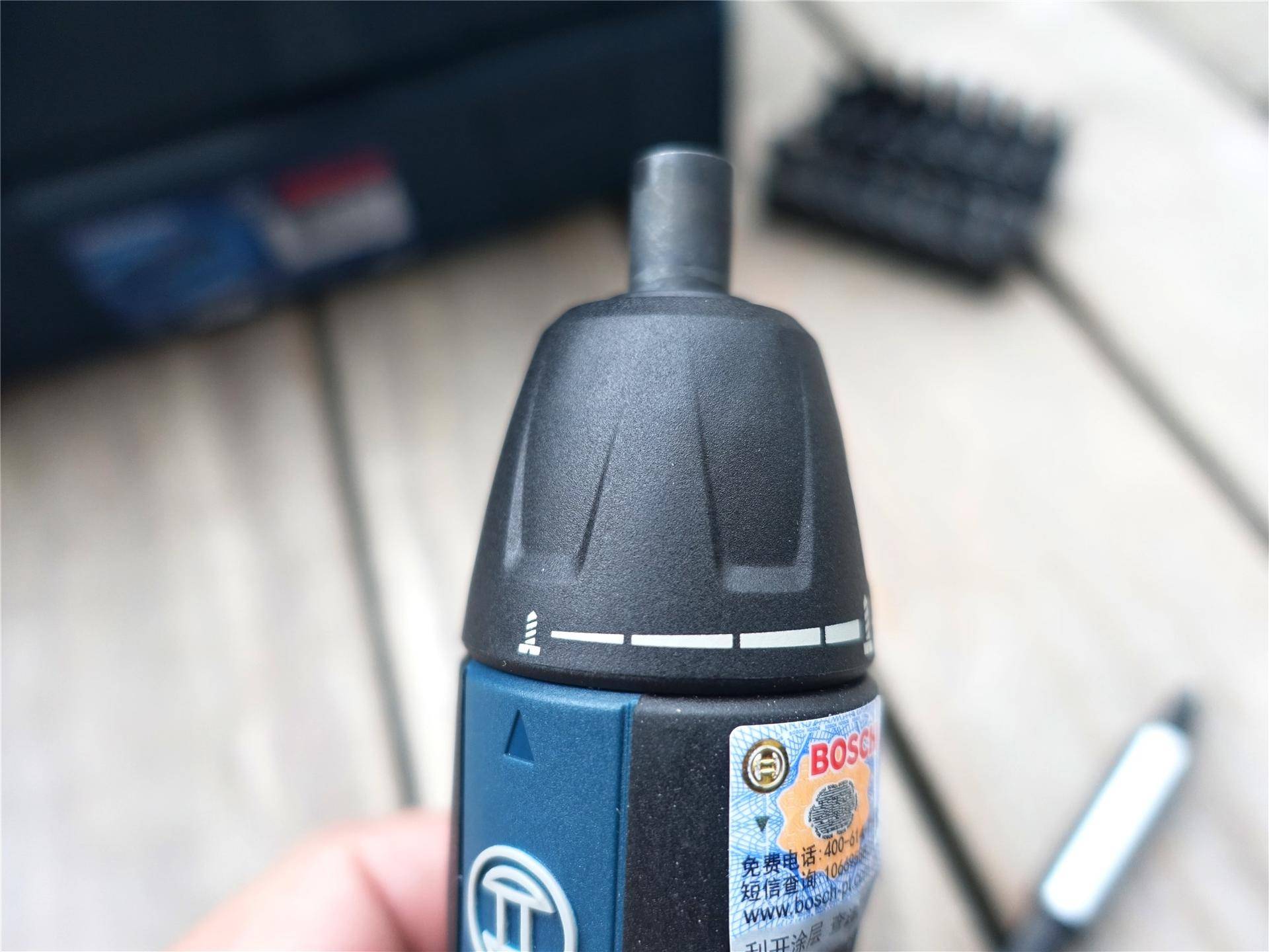 在这套博世轻松收纳版中,最核心的就是这把博世GO二代了,二代在一代的基础上做了很多改进,取消了一代尾部的扭力调节,改为头部旋转扭力调节,将最低档扭矩调整为0.2Nm,在使用范围上扩大了不少,并且增加了机械离合和电子刹停,还增加了手动控制按键,整体来说操控性能要更强。