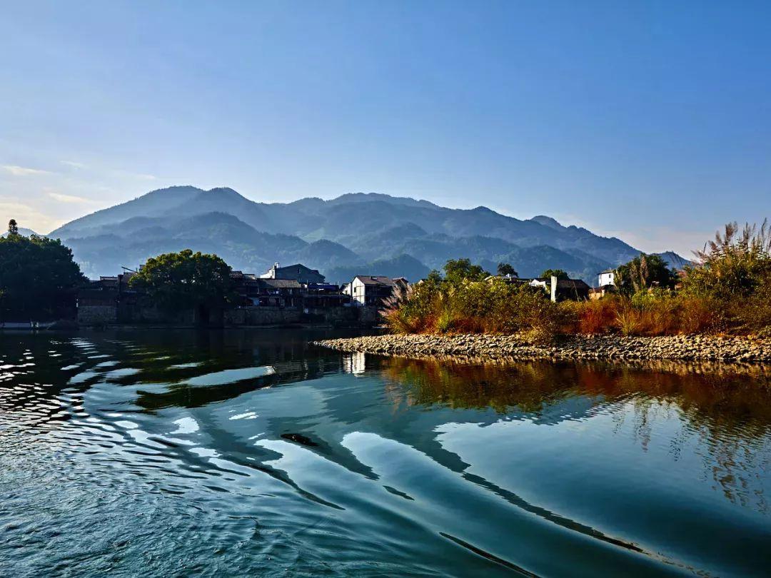 九曲练江,十里画廊,远看好似一条长龙蜿蜒盘旋在碧水上,山水飘逸。