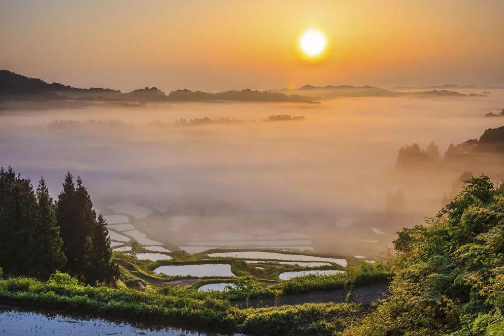 日出云海,当阳光渐渐升高,炊烟人家,耕牛犁田,牧童短笛,整个世界顿时鲜活起来。