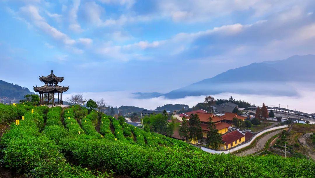 寺院历经1000多年,曾被彻底毁坏,而今重建,背倚百亩梯田和茶园,风光无限。