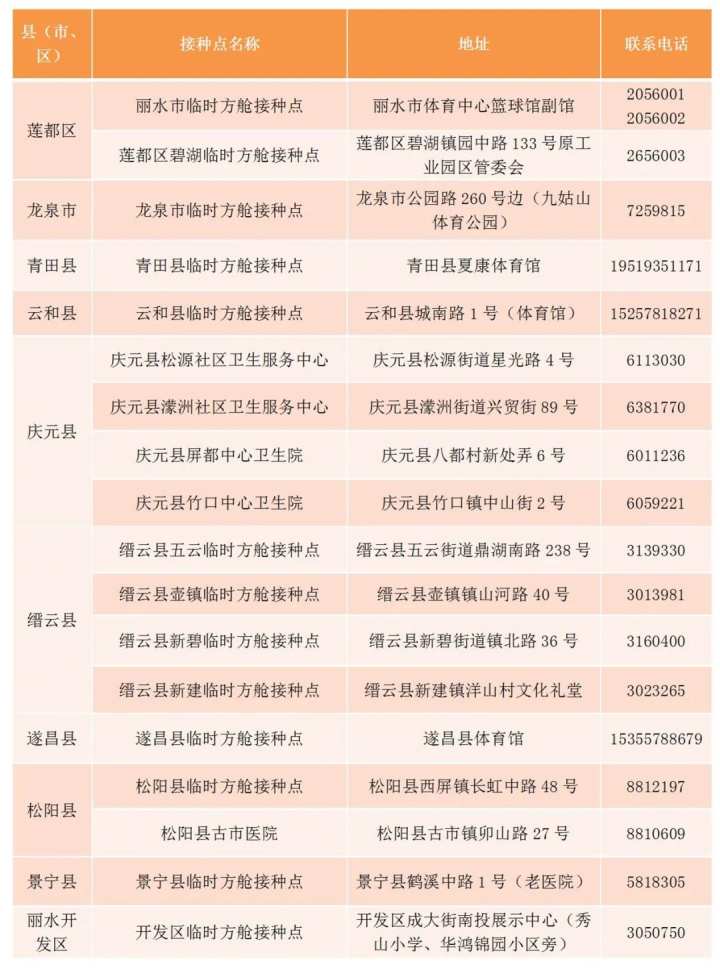 丽水市新冠病毒疫苗接种点