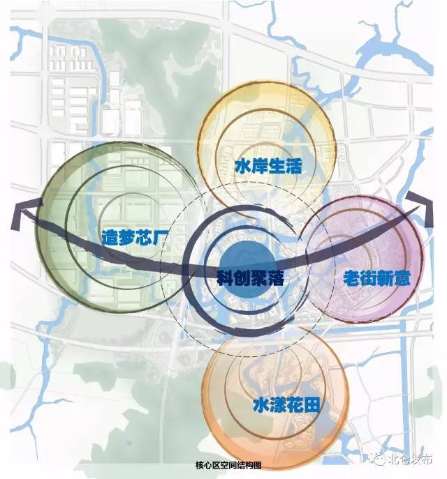 本次规划布局主要由三部分组成:高端制造生产区、研发服务综合区和老街生态文化区。期望通过产业升级与社区提升,由加工制造为基础的生态体系逐渐过渡成为以创新创业为基础的生态体系。
